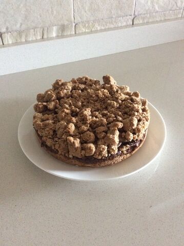 おやつに食べてみたところ、美味しいけれど、もうちょっと甘さがある方が好みかなという感じでした。クランブル部分を100%全粒粉にしてしまったので、かなり素朴な感じなケーキになりました。100%全粒粉でも美味しいと思えるメニューを色々考えているのですが、今のところ、高さのあるパン風ピッツァだけ(薄いお店風のピッツァは精製されている小麦の方が美味しい)が、心から美味しいと思えるレベルです。やはりお菓子とか、菓子パン風のパンとかは、白い小麦粉で作った方が断然美味しいと感じます。全粒粉100%のレシピが少ないのはそれなりの理由があるのですね。(私が今まで見たものは大抵一部分だけを全粒粉にして、あとは精製小麦を足すというものが多かった)ヘルシーと美味しいの両立はなかなか難しいですね。